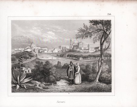 Veduta tratta dal celebre ' L'Italie, la Sicile, les Iles Éoliennes, l'Ile d'Elbe, la Sardaigne, Malte, l'Ile de Calypso etc. D'après les inspirations, les recherches et les travaux de M. M. le Vicomte de Chateaubriand, De Lamartine, Raoul-Rochette, le Comte de Forbin, Piranesi, Mazzara, et de Napoléon, Denon, Saint-Non, Lord Byron, Goethe, Visconti, Cicognara, Lanzi, de Bonstetten, Swinburne, etc. Sites, Monumens, Scènes et Costumes, d'après M.me Haudebourt-Lescot, MM. Horace-Vernet, Granet, Isabey, Ciceri, Mazzara, le Major Light, le Cap. Batty, Cooke, Gell et Gandy, Pinelli, Ferrari, Zucoli, et beaucoup d'autres artistes italiens. Recueillis et publiés par Audot Père, Membre de la Société de Géographie, ' edito a Parigi tra il 1834 ed il 1837 e ristampato a Torino [Giuseppe Pomba e Ca, 1834-1838]. L'opera, in cinque volumi, raccoglie scritti di autori vari, curati da Audot, ed è riccamente illustrata da 324 incisioni su acciaio fuori testo, molte delle quali con accostamento multiplo, per un totale di 473 tavole. Fu notoriamente mastodontico il lavoro cui si sottopose Louis Eustache Audot (1783-1870). View taken from the famous ' L'Italie, la Sicile, les Iles Éoliennes, l'Ile d'Elbe, la Sardaigne, Malte, l'Ile de Calypso etc. D'après les inspirations, les recherches et les travaux de M. M. le Vicomte de Chateaubriand, De Lamartine, Raoul-Rochette, le Comte de Forbin, Piranesi, Mazzara, et de Napoléon, Denon, Saint-Non, Lord Byron, Goethe, Visconti, Cicognara, Lanzi, de Bonstetten, Swinburne, etc. Sites, Monumens, Scènes et Costumes, d'après M.me Haudebourt-Lescot, MM. Horace-Vernet, Granet, Isabey, Ciceri, Mazzara, le Major Light, le Capt. Batty, Cooke, Gell et Gandy, Pinelli, Ferrari, Zucoli, et beaucoup d'autres artistes italiens. Recueillis et publiés par Audot Père, Membre de la Société de Géographie, ' published in Paris between 1834 and 1837 and reprinted in Turin [Giuseppe Pomba e Ca, 1834-1838]. The work, in five volumes, collects the writings of various authors, edited by Audot, and is richly illustrated with 324 engravings on steel outside the text, many of them with multiple combinations, for a total of 473 tables. Louis Eustache Audot (1783-1870) was a notoriously mammoth task. Cfr.