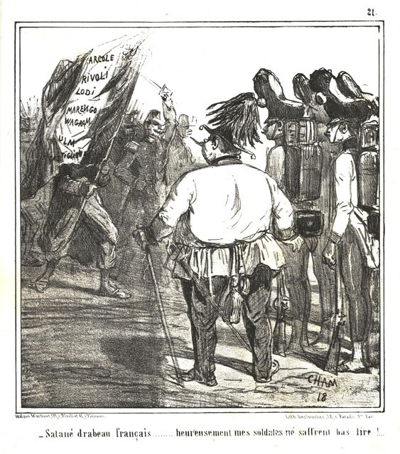 Satané drabeau français .heureusement mes soldates ne saffrent bas lire! | Stampe | Cham dis. & Destouches lith.