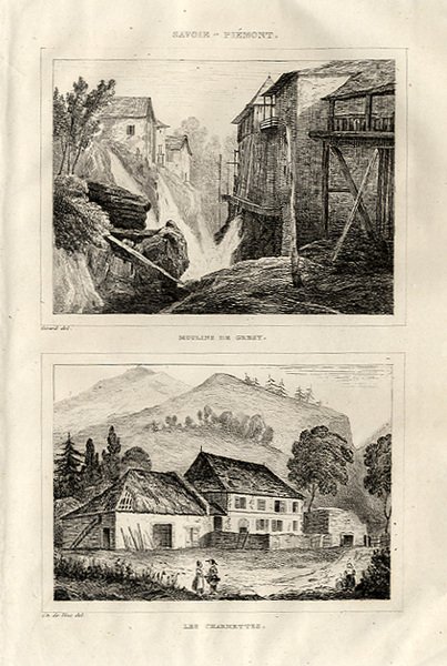 SAVOIA - Due vedutine su unica tavola: "Moulins de Fresy" - "Les Charmettes".