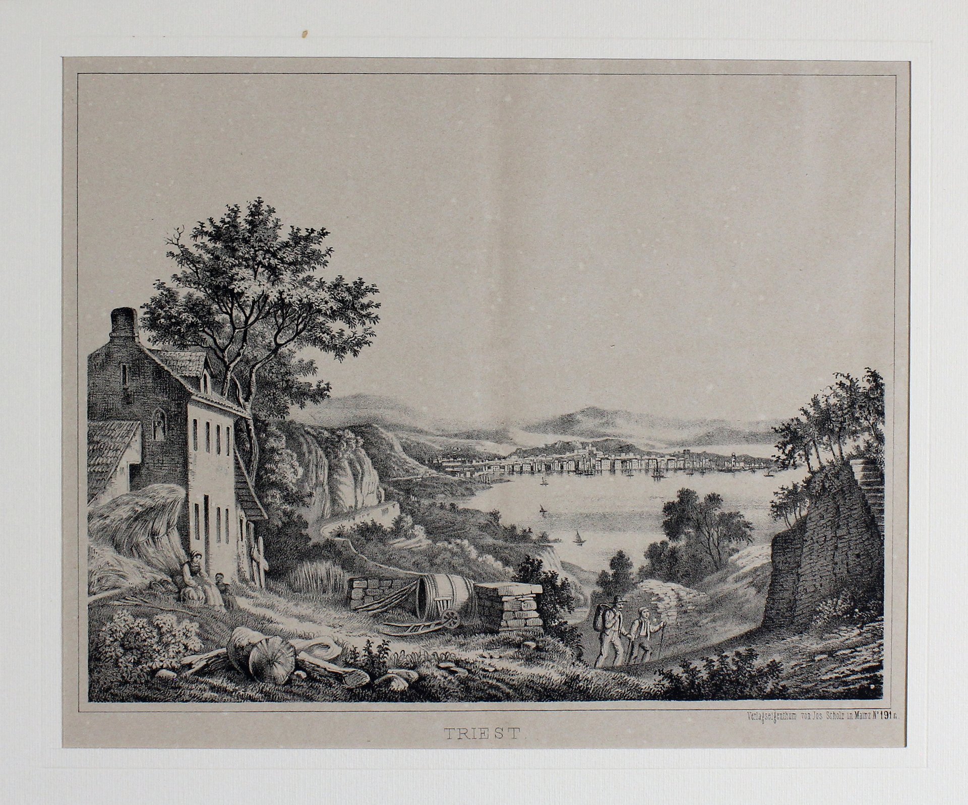 Litografia che raffigura il golfo di Trieste edita a Magonza nella seconda metà dell''800 da Karl Joseph Scholz all’interno di una serie che comprende anche Pirano e Capodistria.