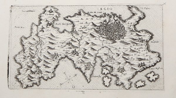 Carta tratta dal celebre “Viiaggio da Venezia a Costantinopoli" del Rosaccio, illustrate dalle tavole di Giacomo Franco. Nel 1597 viene stampata la "Descrittione Geografica delle Isole, città e fortezze principali che si trovano in mare nel viaggio da Venetia à Costantinopoli; con molte altre a questo vicine, di nuovo aggiunte. Racolte con molta acuratezza da Giacomo Franco". L’opera reca in calce l’imprint Venetia, Presso il Franco 1597. Nel 1597 chiede e ottiene un privilegio per il volume del medico e geografo di Pordenone GiuseppeRosaccio (1530-1620 circa), “Il viaggio da Venezia a Costantinopoli”, che viene alla luce con il titolo Viaggio da Venetia a Costantinopoli per mare, e per terra, & insieme quello di Terra Santa. Da Gioseppo Rosaccio con brevita descritto. Nel quale, oltre à Settantadui disegni, di geografia, e corografia si discorre, quanto in esso viaggio, si ritrova. Cioe. Citta, Castelli, Porti, Golfi, Isole, Monti, Fiumi, e Mari. Opera utile, à Mercanti Marinai et à Studiosi di Geografia.Nel testo del Viaggio… le nozioni di natura prettamente storica e geografica sono utilizzate da Rosaccio per la costruzione e per il completamento di un itinerario di viaggio che sia “utile” - come è specificato nel sottotitolo - non solo agli studiosi di geografia, ma in primo luogo a mercanti e marinai.Il Viaggio… rientra in una sotto-tipologia di testi che diffondevano e illustravano – grazie alle ricche e dettagliate descrizioni, che accompagnano immagini e carte di viaggio relative a isole, porti e terreferme - le mutate concezioni geografiche seguite alle numerose e importanti scoperte compiute tra la fine del Quattrocento e l’inizio del Cinquecento. L’opera del Rosaccio, infatti, presenta una raccolta di 76 carte con incisioni che rappresentano graficamente le tappe dell’itinerario descritto dall’autore, raffigurando le principali città, tratti di costa, golfi, ma anche vedute, castelli, fortezze. Si potrebbe senz’altrodefinire il corpus delle incisioni come la parte più importante dell’opera: il testo, infatti, nelle parole dello stesso autore, non rappresenta altro che una vera e propria didascalia destinata ad accompagnare e commentare ogni immagine. Nelle didascalie, però, si ‘infiltrano’ ulteriori dati, di carattere prevalentemente storico ed etnografico, in grado di restituire un quadro più completo e articolato dei luoghi e delle popolazioni incontrate lungo il tragitto che da Venezia portava i naviganti a Costantinopoli. L’opera di Rosaccio, dunque, coniuga l’illustrazione cartografica dell’itinerario con la tradizione popolare dei pellegrinaggi in Terra Santa. Le due tradizioni, quella degli isolari e quella dei pellegrinaggi in Terra Santa, si fondono in un’opera odeporica che vuole essere in primo luogo utile e che trova, perciò, il suo tratto distintivo proprio nella “brevità” con cui lo scrittore “promette” al lettore di trattare gli argomenti. Il vero fruitore dell’opera è dunque ogni viaggiatore, che si trovi a dover percorrere, per qualunque motivo, l’itinerario da Venezia a Costantinopoli - così come era accaduto a Marco Veniero, ambasciatore veneto a Costantinopoli, a cui l’editore Giacomo Franco dedica il Viaggio… - “in modo che egli si possa non solo leggendo imparare, ma quasi vedere in fatto con gli occhi propri” le isole e le coste, che si incontrano lungo l’itinerario (cfr. Carriero, Giuseppe Rosaccio.Viaggio da Venetia a Costantinopoli Per Mare, e Per Terra, Da Gioseppo Rosaccio con brevità descritto, 2009).L’opera conosce numerose edizioni; alla Marciana [245.d.253] e conservata la raccolta di tavole stampata da Giacomo Franco nel 1597, mentre l’edizione del Viaggio… – con il testo di Rosaccio e la dedica a Marco Venier – viene alla luce nel 1598, e conosce una ristampa nel 1608. Le tavole vengono poi ristampate da Marco Sadeler e, come già osservato, in seguito saranno inserite nell’edizione. Map taken from the famous "Viaggio da Venetia a Costantinopoli per mare, e per terra, & insieme quello di Terra Santa. Da Gioseppo Rosaccio con brevita descritto. Nel quale, oltre à Settantadui disegni, di geografia, e corografia si discorre, quanto in esso viaggio, si ritrova. Cioe. Citta, Castelli, Porti, Golfi, Isole, Monti, Fiumi, e Mari. Opera utile, à Mercanti Marinai et à Studiosi di Geografia" by Rosaccio, published in Venice in 1598 by Giacomo Franco. Perfect conditions. Rare. Cfr. S. Bifolco, Città e Fortezze Principali del Mondo, in S. Bifolco-F. Ronca (a cura di) "Cartografia e Topografia Italiana del XVI secolo. Catalogo ragionato delle opere a Stampa" (2018), pp. 129, 149, 150-151, n. 65; Zacharakis (2009), n. 2969.