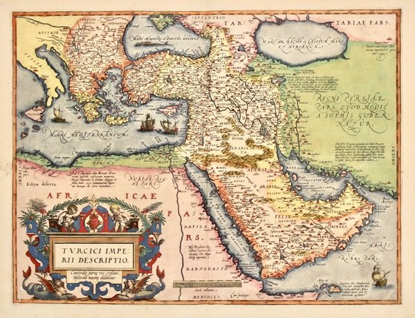Coppia di incisioni in rame, unite e dipinte a mano a formare una grande carta di mm 895x630, arricchita dai consueti ricchi cartigli, tipici del cartografo veneto. Tratta da "Corso geografico", senza testo al verso, (1688-92) una delle più celebri opere del vulcanico religioso veneziano, autore fra la fine del secolo e gli inizi del successivo di decine di importanti pubblicazioni fra cui ricordiamo il "Libro dei globi", oltre ai celebri globi costruiti per il re di Francia, "Teatro della guerra", "Atlante veneto" e "Teatro delle città". Bell'esemplare con margine sinistro breve, piccolo difetti ai margini. <BR>Couple of joined copper engravings, each mm 450x630 (total size mm 895x630) engraved in the typical flamboyant Coronelli's style, colored by hand. Nice example of Coronelli's 2 sheet map of Holland, including large cartouches and table of counties, towns, etc. Showns towns, mountains, rivers, lakes, islands, bays, churches and other features. One of the most decorative large format 17th Century maps of Holland<BR>From "Corso geografico" with no text on verso. The remarkable Vincenzo Coronelli (1650-1718), encyclopaedist, geographer, inventor and Doctor of Theology, was citizen of the Republic of Venice. He was also one of the most prominent mapmakers and publishers in Europe of his day. Vincenzo Coronelli, in addition to being an ordined Franciscan priest who eventually became Father General of his order, was also one of the most prominent mapmakers and publishers in Europe of his day. He was appointed official Cosmographer to the Venetian Republic in 1685, a year after he founded the world's earliest geographic society, "L'Accademia Cosmografica degli Argonauti" in the same city. A good example with minor marginal defects. <BR>