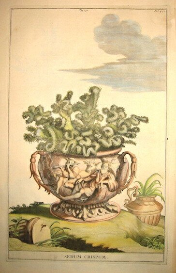 Incisione originale su rame (cm. 20x31,5 più margini bianchi) in raffinata coloritura all’acquarello tratta dall’opera ‘Naauwkeurige Beschryving der Aardgewassen.’. Ottimo esemplare. Rara.