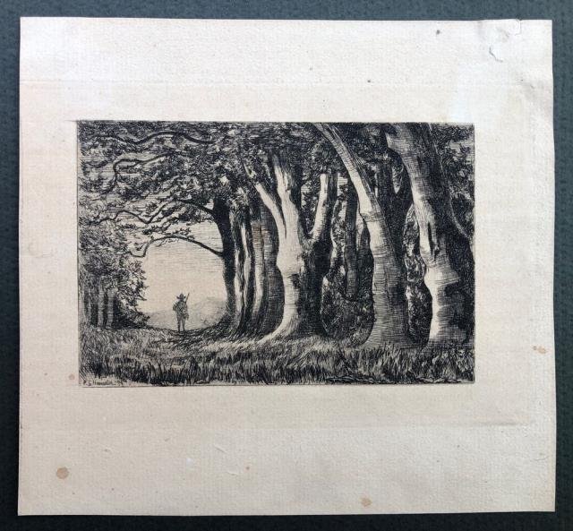 Fine '800. Incisione in rame all'acquaforte, b/n, cm 10 x 15 (alla lastra). L'Autore (Laneside, 1834 – Boulogne - sur Mer, 1891) fu pittore, incisore, critico e illustratore di libri d'arte. Studiò a Londra e soggiornò a Parigi, conducendo un'esistenza piuttosto primitiva che si riscontra in alcune sue opere. Raffinata incisione firmata in lastra in basso a sinistra. Rifilato il margine laterale destro in prossimità della battuta. Buono stato.