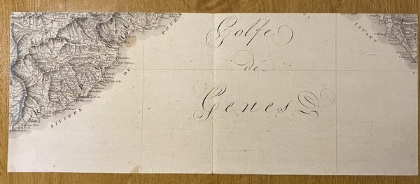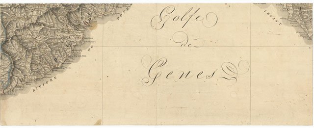 Particolare della carta disegnata da Bacler D'Albe "Carte Générale Du thèatre de la Guerre en Italie et dans Les Alpes Dépuis le passage du Var le 22 7bre 1792 V.S. jusqu'à l'entée des francais à Rome le 22 pluviose an 6.me Rép.ain .". La carta rappresenta parte del territorio della Riviera di ponete da Bordighera a Noli. Evidenziati a colori i vari schieramenti, gora