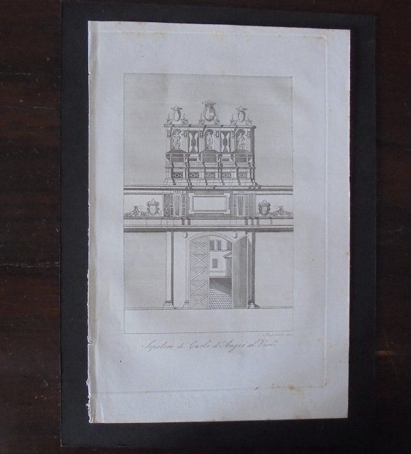 Tratta da Scipione Volpicella Storia dei Monumenti. Incisione di mm. 100 x 170 (=lxh) più margini. Firmata a destra in basso: Imperato.
