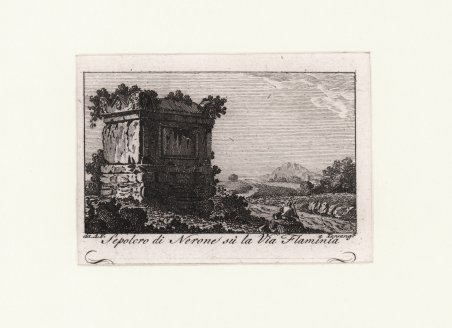 Veduta tratta dalla celebre Raccolta di num. 320 Vedute sì antiche, che moderne della città di Roma. …Incise a bulino in N. 80 rami, In Roma Nella Calcografia di Agapito Franzetti a Torsanguigna Col Permesso. ' L’opera si compone di un frontespizio calcografico e di 80 tavole numerate, ognuna composta da quattro vedute. Viene stampata senza data; molti repertori la datano intorno al 1790 circa, forse perché stampata su carta vergata. Una datazione intorno al 1800 ci sembra tuttavia più plausibile. ' Agapito Franzetti, calcografo attivo a Roma con bottega tra via del Corso e Torsanguigna, è noto per le sue piccole incisioni di veduta che servivano spesso come biglietti da visita. Tutte contengono, infatti, una linea in basso, dove si poteva apporre il proprio nome ad inchiostro. Come indicato nel titolo, le vedute raffigurano sia monumenti e antiche rovine che vedute “moderne”, con piazze, chiese e ville. Ciascuna tavola reca, in basso al centro, il nome dell’incisore. Gli artisti coinvolti sono sei: Jean-Jerome Baugean; Antonio Giuseppe Barbazza; Giovanni Battista Cipriani; Francesco Morelli; Antonio Poretta e Domenico Pronti. Molte delle vedute derivano dalla celebre opera di Giuseppe Vasi, Delle magnificenze di Roma antica e moderna. Pubblicata in 10 volumi dal 1747 al 1761, l’opera presenta 238 incisioni in rame, ciascuna incisione con testo narrativo che fornisce informazioni storiche e documentarie. ' Acquaforte, in buono stato di conservazione. ' Bibliografia: A. Bertarelli, H. Prior, Il biglietto da visita italiano. Cintributo alla storia del costume e dell'incisione nel secolo XVII, Bergamo 1911, p. 162. View of the city printed in Rome by the publisher Agapito Franzetti. Taken from Raccolta di num. 320 Vedute sì antiche, che moderne della città di Roma. …Incise a bulino in N. 80 rami, In Roma Nella Calcografia di Agapito Franzetti a Torsanguigna Col Permesso. ' The work consists of an intaglio frontispiece and 80 numbered plates, each consisting of four views. It is printed without date; many repertories date it around 1790, perhaps because it was printed on laid paper. A date around 1800 seems more plausible. Franzetti, a chalcographer working in Rome with a workshop between Via del Corso and Torsanguigna, is known for his small engravings of views that were often used as business cards. They all contain a line at the bottom where one's name could be written in ink. The small views were often printed four to a sheet. As indicated in the title, the views depict both monuments and ancient ruins and "modern" views, with squares, churches and villas. Each table bears, at the bottom center, the name of the engraver. There are six artists involved: Jean-Jerome Baugean; Antonio Giuseppe Barbazza; Giovanni Battista Cipriani; Francesco Morelli; Antonio Poretta and Domenico Pronti. ' The views are made after Giuseppe Vasi’s monumental work Delle magnificenze di Roma antica e moderna. Published in 10 volumes from 1747 to 1761, the work features 238 copper engravings, each engraving with a narrative text that provides historical and documentary information. Bibliografia: A. Bertarelli, H. Prior, Il biglietto da visita italiano. Contributo alla storia del costume e dell'incisione nel secolo XVII, Bergamo 1911, p. 162. Cfr.