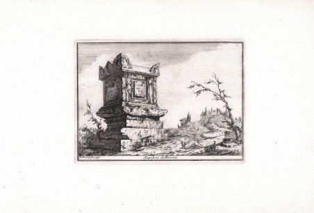 Acquaforte, 1745 circa, firmata in lastra. Magnifica prova, con pieni margini, in perfetto stato di conservazione.Opera tratta dalle “Varie Vedute di Roma Antica, e Moderna. Disegnate e Intagliate da Celebri Autori” stampata in Roma “a spese di Fausto Amidei”, 1748.La raccolta, in 4° oblungo, viene pubblicata da Fausto Amidei in varie edizioni dal 1745 al 1750, e da Giovanni Bouchard nel 1752. Conteneva frontespizio inciso e 93/96 tavole, delle quali 47 firmate Piranesi in lastra ed altre da Giraud, Carloni, Nicole, Mogalli, Bellicard, Le Geay, ed Anesi.Opere giovanili del Piranesi, appena giunto a Roma dove fu allievo della bottega di Giuseppe Vasi. Vasi lavora alle sue vedute, che presentate come raccolta, prenderanno dal 1747 il nome delle 'Magnificenze di Roma'; agli inizi dell’opera Piranesi lo affianca, ma, almeno dal 1744, produce sue proprie vedutine, che nel 1745 formano il nucleo più importante delle 'Varie Vedute di Roma antica e moderna disegnate e intagliate da celebri autori' per il libraio ed editore Amidei. Etching, around 1745, signed in plate. A very good impression with full margins, in perfect condition.Taken from the “Varie Vedute di Roma Antica, e Moderna. Disegnate e Intagliate da Celebri Autori” printe in Rome by Fausto Amidei, 1748.The collection, in 4th oblong, is published by Fausto Amidei in various editions from 1745 to 1750, and by Giovanni Bouchard in 1752. It contained an engraved frontispiece and 93/96 plates, of which 47 signed by Piranesi and others by Giraud, Carloni, Nicole, Mogalli, Bellicard, Le Geay, and Anesi.Early works by Piranesi, who had just arrived in Rome where he was a student of the workshop of Giuseppe Vasi. Vasi’s works will take the name of the 'Magnificenze di Roma'; from 1747; at the beginning of the work Piranesi joined him, but, at least since 1744, he produced his own views, which in 1745 formed the most important nucleus of the 'Varie Vedute di Roma antica e moderna disegnate e intagliate da celebri autori' for the bookseller and editor Amidei . Cfr.