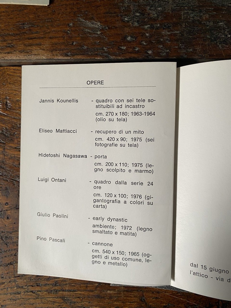 Kounellis Mattiacci Nagasawa Ontani Paolini Pascali In 12° brossura editoriale 8 pp. I° edizione Ottimo stato