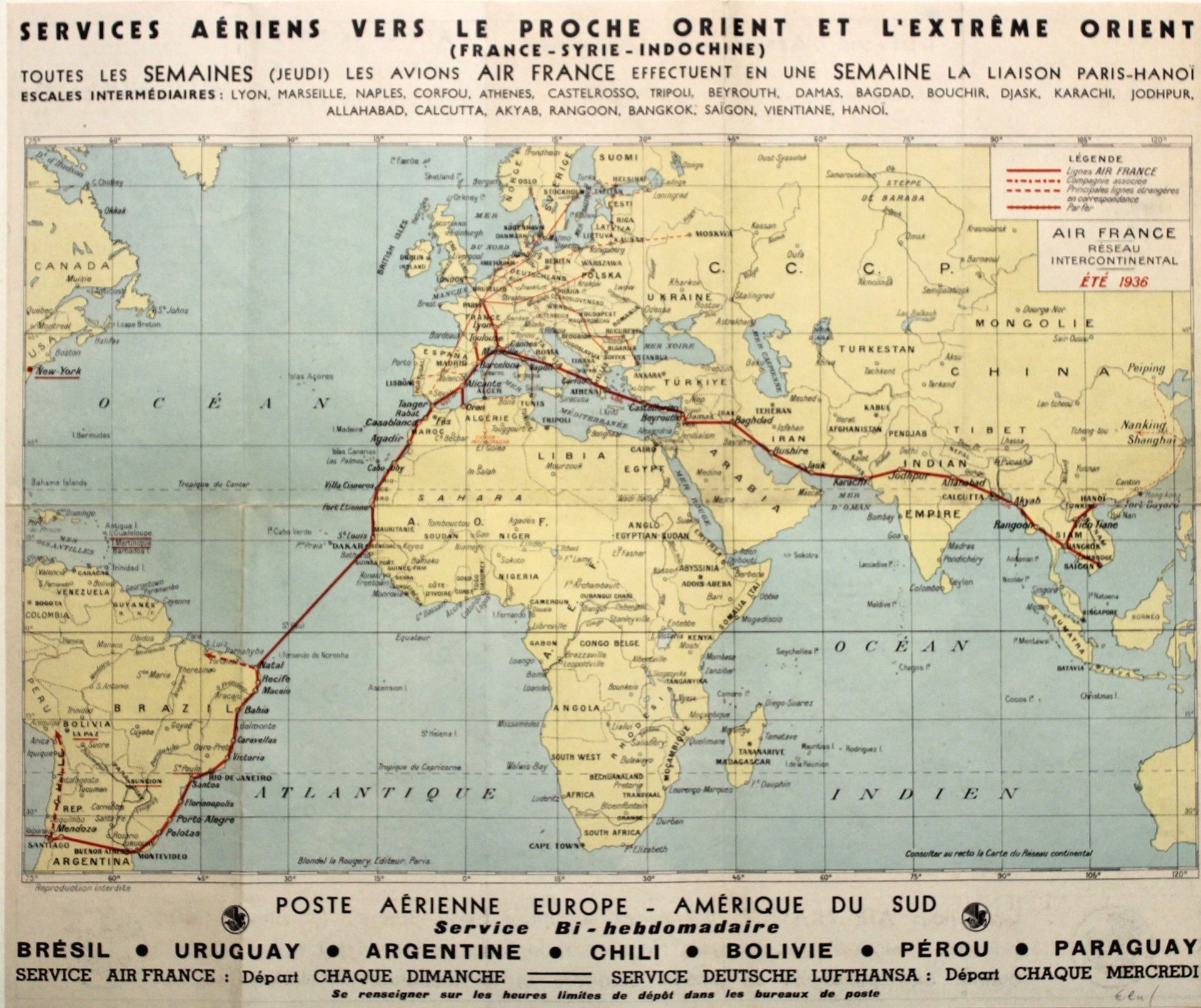 Cromolitografia, mm 360x427, traccia di piega. Sul retro : Air France. Réseau continental. <BR>