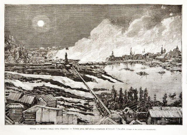 Siberia.- Incendio della città d’Irkutsk.- Veduta presa dall’altura sovrastante al torrente Uclacafka