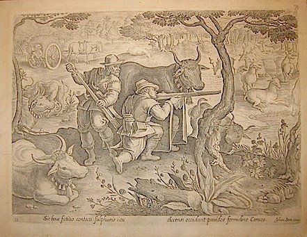 Incisione originale su rame (cm. 28x21 più ampi margini) da un disegno di Jan Van Der Straet (Giovanni Stradano) tratta dall’opera ‘Venationes Ferarum, Avium, Piscium.’. Carta filigranata. Un forellino abilmente restaurato ma ottimo esemplare. Cfr. Baroni Vannucci, p. 371.