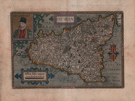 Carta decorativa della Sicilia, con ritratto del re Filippo di Spagna e stemma. La carta appare per la prima volta nel 1594, ma sono note ristampe fino al 1608. Bella e rara carta, tratta dall'opera di M. Quad ' Fasciculus Geographicus Complectens Praeciparum Totius orbis Regionum tabulas circiter centum. una cum earundum Enarrationibus ' edito a Colonia da J. Bussemacher, nel 1608. Matthaus Quad era un cartografo tedesco con sede a Colonia. La carta fu incisa da Johannes Bussemacher e apparve in diverse opere geografiche pubblicate da Quad e Bussemacher alla fine del XVI e all'inizio del XVII secolo. Matthias Quad (1557-1613), editore di carte geografiche con sede a Colonia, fu formato nei Paesi Bassi da Johannes van Doetecum, che lavorava anche con i De Jode. Quad utilizzò molte mappe di De Jode come base a cui aggiunse informazioni e decorazioni. Nel 1592 Quad pubblicò un atlante dell'Europa con 38 mappe. Nel 1594 lo ampliò a 50 mappe. Nel 1600 ampliò ulteriormente la collezione di mappe, questa volta fino a 82, e chiamò l'atlante ' Geographisch Handtbuch. Tutti e tre gli atlanti erano di piccole dimensioni, il che consentiva loro di competere come alternative più economiche ai grandi atlanti di Ortelius, Mercatore e De Jode. Quad pubblicò un altro atlante, nel 1608, con 86 mappe, il ' Fascilus Geographicus. “La carta della Sicilia non compare nella prima edizione del volume, pubblicata nel 1592, ma è inserita solo a partire dalla seconda del 1594. La carta reca inciso, al di sotto della scala, il nome dello stampatore ' "Joann Bus- semecher excudit" ' mentre, nell'angolo in basso a sinistra, compare la lettera Q che sta per Matthaeus Quad, autore dell'incisione. In un riquadro in alto a sinistra è raffigurato Filippo II d'Asburgo. La carta dell'isola incisa da Bussemecher, copiata dal modello gastaldino proposto nel ' Theatrum ' di Ortelius, compare anche in altre opere pubblicate a Colonia, senza subire alcuna modifica e viene inserita anche nella ' Cosmographia ' di Johann Rauw, pubblicata a Francoforte nel 1597. L'incisione è arricchita, in un riquadro in alto a sinistra, da un ritratto di Filippo II re di Spagna (1527-1598), dal 1556 re di Napoli e di Sicilia e, al centro sulla destra, dallo stemma del regno di Sicilia formato da quattro fasce verticali (della casa regnante di Aragona) e due aquile che si fronteggiano. Dalla presenza del ritratto di Filippo II si evince che l'incisione della carta è stata terminata prima del settembre del 1598.” (Valerio-Spagnolo "Sicilia 1477-1861", p. 189). Acquaforte, finemente colorata a mano, in ottimo stato di conservazione. ' ' Bibliografia: Valerio-Spagnolo "Sicilia 1477-1861", pp. 189-191, n. 56; La Gumina, L'isola a tre punte, n. 63. Decorative map of Sicily, with a portrait of King Philip of Spain and coat of arms. From Fasciculus ' Geographicus Complectens Praeciparum Totius orbis Regionum tabulas circiter centum. una cum earundum Enarrationibus, Cologne, J. Bussemacher, 1608. Matthaus Quad was a German cartographer based in Cologne. The map was engraved by Johannes Bussemacher and appeared in several Geographical works published by Quad and Bussemacher at the end of the 16th and beginning of the 17th century. Matthias Quad (1557-1613), a map publisher based in Cologne, was trained in the Netherlands by Johannes van Doetecum, who also worked with the De Jodes. Quad used many De Jode maps as a base to which he added additional information and decorations. Quad was best known for his atlases, which were part of the first boom in atlases best characterized by Abraham Ortelius’ Theatrum Orbis Terrarum. In 1592, Quad released an atlas of Europe that had 38 maps. He expanded it in 1594 to 50 maps. In 1600, he expanded the collection of maps further still, this time to 82 maps, and called the atlas, Geographisch Handtbuch. All three were small in size, allowing them to compete as cheaper alternatives to the larger atlases of Ortelius, Mercator, and the De Jodes. Quad released one other atlas, in 1608, with 86 maps, the ' Fascilus Geographicus. “La carta della Sicilia non compare nella prima edizione del volume, pubblicata nel 1592, ma è inserita solo a partire dalla seconda del 1594. La carta reca inciso, al di sotto della scala, il nome dello stampatore ' "Joann Bus- semecher excudit" ' mentre, nell'angolo in basso a sinistra, compare la lettera Q che sta per Matthaeus Quad, autore dell'incisione. In un riquadro in alto a sinistra è raffigurato Filippo II d'Asburgo. La carta dell'isola incisa da Bussemecher, copiata dal modello gastaldino proposto nel ' Theatrum ' di Ortelius, compare anche in altre opere pubblicate a Colonia, senza subire alcuna modifica e viene inserita anche nella ' Cosmographia ' di Johann Rauw, pubblicata a Francoforte nel 1597. L'incisione è arricchita, in un riquadro in alto a sinistra, da un ritratto di Filippo II re di Spagna (1527-1598), dal 1556 re di Napoli e di Sicilia e, al centro sulla destra, dallo stemma del regno di Sicilia formato da quattro fasce verticali (della casa regnante di Aragona) e due aquile che si fronteggiano. Dalla presenza del ritratto di Filippo II si evince che l'incisione della carta è stata terminata prima del settembre del 1598.” (Valerio-Spagnolo "Sicilia 1477-1861", p. 189). Etching with fine later hand colour, good condition. ' Bibliografia: Valerio-Spagnolo "Sicilia 1477-1861", pp. 189-191, n. 56; La Gumina, L'isola a tre punte, n. 63. Cfr.