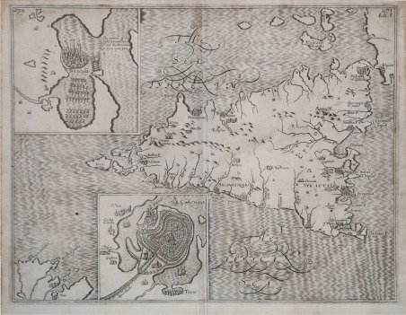 Bella carta della Sicilia antica, basata su fonti Orteliane, tratta dal celebre The Histoire of the World in five books di Sir Walter Raleigh, pubblicato per la prima volta a Londra nel 1614. “Sir Walter Raleigh (1552-1618), poeta, uomo d’armi, esploratore, scrittore è stato una prominente figura dell’era elisabettiana. Famose rimasero le sue spedizioni alla ricerca della città dell'oro nel 1594, e il conseguente fantastico racconto dal titolo The Discovery of Guaiana (1596) contribuì alla nascita del mito di El Dorado. La carta della Sicilia fu inserita nel volume di storia universale scritto durante un lungo periodo di prigionia nella torre di Londra (1603-1616), ove fu imprigionato con l'accusa di avere complottato contro Giacomo I. La prima edizione vide la luce nel 1614. Nel 1616 fu liberato per effettuare una seconda esplorazione lungo le coste della Guayana e del Venezuela. Durante questa missione i suoi uomini misero a ferro e fuoco un avamposto spagnolo sull'Orinoco, avvenimento che costrinse gli inglesi ad arrestarlo e decapitarlo al suo rientro in Inghilterra, nel 1618, per placare la dura reazione della corte spagnola. Il volume fu ritirato alcuni mesi dopo la sua pubblica-zione perché il re aveva ritenuto che alcuni commenti `storici' fossero riferimenti critici ad avvenimenti con-temporanei della corte inglese. La complessa personalità dell'autore si manifesta già nel frontespizio figurato, composto da varie figure allegoriche, il cui senso è spiegato in un brano in rima dal titolo "The Minde of the Front", che lo precede. La carta della Sicilia presenta un inserto con la città di Siracusa durante l'attacco navale sferrato dagli Ateniesi, sotto il comando di Nicia (470-413) al termine della Guerra del Peloponneso. In basso al centro è raffigurato il porto di Cartagine. Entrambi i soggetti non sembrano ripresi da alcuna carta a stampa nota. Nella Sicilia antica di Ortelius, a cui sembra rifarsi per il profilo costiero e per il contenuto geografico, compare l'inserto di Siracusa e del suo territorio, ma non l'episodio della battaglia navale. Nell'inserto di Raleigh è raffigurato il momento antecedente la battaglia finale, quando le due squadre navali si fronteggiano, descritto da Tucidide in VII 69.4: "Demostene, Menandro ed Eutidemo, che erano gli strateghi della flotta ateniese, salpati dal loro campo navigarono subito verso lo sbarramento del porto e il passaggio lasciatovi, con l'intenzione di forzarlo e uscire" e nell'inizio del passo successivo (VII 70.1): "Ma essendo già usciti incontro a loro i Siracusani e gli alleati con un nu-mero di navi quasi eguale a quello di prima", cui fa seguito lo sviluppo della battaglia (VII 71 e VII 72). Poco prima lo storico greco aveva parlato del proposito dei siracusani di non dare scampo agli ateniesi né per terra né per mare, e aveva descritto il blocco dell’imboccatura del porto: "Perciò cominciarono a chiudere subito il porto grande, la cui imboccatura era di circa otto stadi, ormeggiando con ancore triremi, battelli e zattere messi di traverso" (VII 59.3). Anche questo parti-colare è registrato nella mappa con una sorta di ponte di barche che blocca l'ingresso al porto. Il racconto di Tucidide deve avere colpito Raleigh per la sua crudezza e per la lucidità di esposizione, tanto da portarlo a indicare anche nella mappa dell'isola, con apposita simbologia, la cattura di Nicia ("The owerthrow of Nicias") vicino al fiume Assinarus (VII 84, VII 85). Il rame ritoccato e con la paginazione "f. 549" è pubblicato nuovamente nell'edizione del 1687” (cfr. V. Valerio, Sicilia 1477-1861, La Collezione Spagnolo- Patermo in quattro secoli di cartografia, pp. 219-221, n. 77). “Giacché il nome dell'incisore Renold Elstrack compare nel frontespizio di The History Of The World già nella prima edizione, è possibile attribuire alla sua mano un intervento più o me-no incisivo anche nella stesura della carta della Sicilia. Il tipografo-editore Willi. Bella carta della Sicilia antica, basata su fonti Orteliane, tratta dal celebre The Histoire of the World in five books di Sir Walter Raleigh, pubblicato per la prima volta a Londra nel 1614. “Sir Walter Raleigh (1552-1618), poeta, uomo d’armi, esploratore, scrittore è stato una prominente figura dell’era elisabettiana. Famose rimasero le sue spedizioni alla ricerca della città dell'oro nel 1594, e il conseguente fantastico racconto dal titolo ' The Discovery of Guaiana ' (1596) contribuì alla nascita del mito di El Dorado. La carta della Sicilia fu inserita nel volume di storia universale scritto durante un lungo periodo di prigionia nella torre di Londra (1603-1616), ove fu imprigionato con l'accusa di avere complottato contro Giacomo I. La prima edizione vide la luce nel 1614. Nel 1616 fu liberato per effettuare una seconda esplorazione lungo le coste della Guayana e del Venezuela. Durante questa missione i suoi uomini misero a ferro e fuoco un avamposto spagnolo sull'Orinoco, avvenimento che costrinse gli inglesi ad arrestarlo e decapitarlo al suo rientro in Inghilterra, nel 1618, per placare la dura reazione della corte spagnola. Il volume fu ritirato alcuni mesi dopo la sua pubblica-zione perché il re aveva ritenuto che alcuni commenti `storici' fossero riferimenti critici ad avvenimenti con-temporanei della corte inglese. La complessa personalità dell'autore si manifesta già nel frontespizio figurato, composto da varie figure allegoriche, il cui senso è spiegato in un brano in rima dal titolo "The Minde of the Front", che lo precede. La carta della Sicilia presenta un inserto con la città di Siracusa durante l'attacco navale sferrato dagli Ateniesi, sotto il comando di Nicia (470-413) al termine della Guerra del Peloponneso. In basso al centro è raffigurato il porto di Cartagine. Entrambi i soggetti non sembrano ripresi da alcuna carta a stampa nota. Nella Sicilia antica di Ortelius, a cui sembra rifarsi per il profilo costiero e per il contenuto geo
