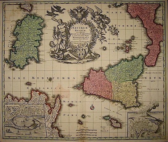 Siciliae Regnum cum adjacente Insula Sardinia et maxima parte Regni Neapolitani accuratissime delineat.