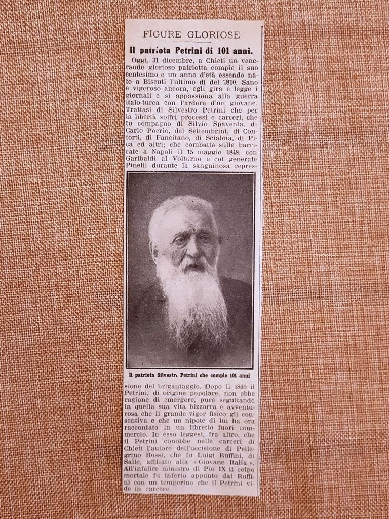 Silvestro Petrini nel 1912 101 anni Nato a Biscuti e vivente a Chieti Patriota