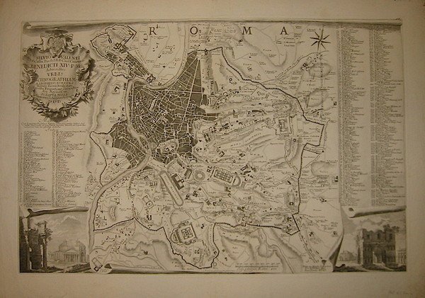 Silvio Valenti. Benedicti XIV P.M. Administro Urbis ichnographiam a Leonardo Bufalino ligneis formis evulgata, servata proportione contractam atq. aeri incisam Jo. Bapta. Nolli.