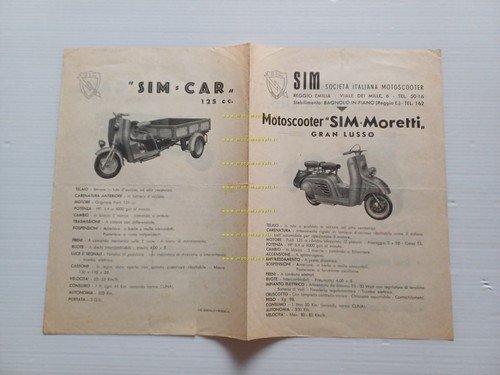 SIM Moretti scooter 125 Gran Lusso-Sidecar Weekend-Simcar motore Puch depliant