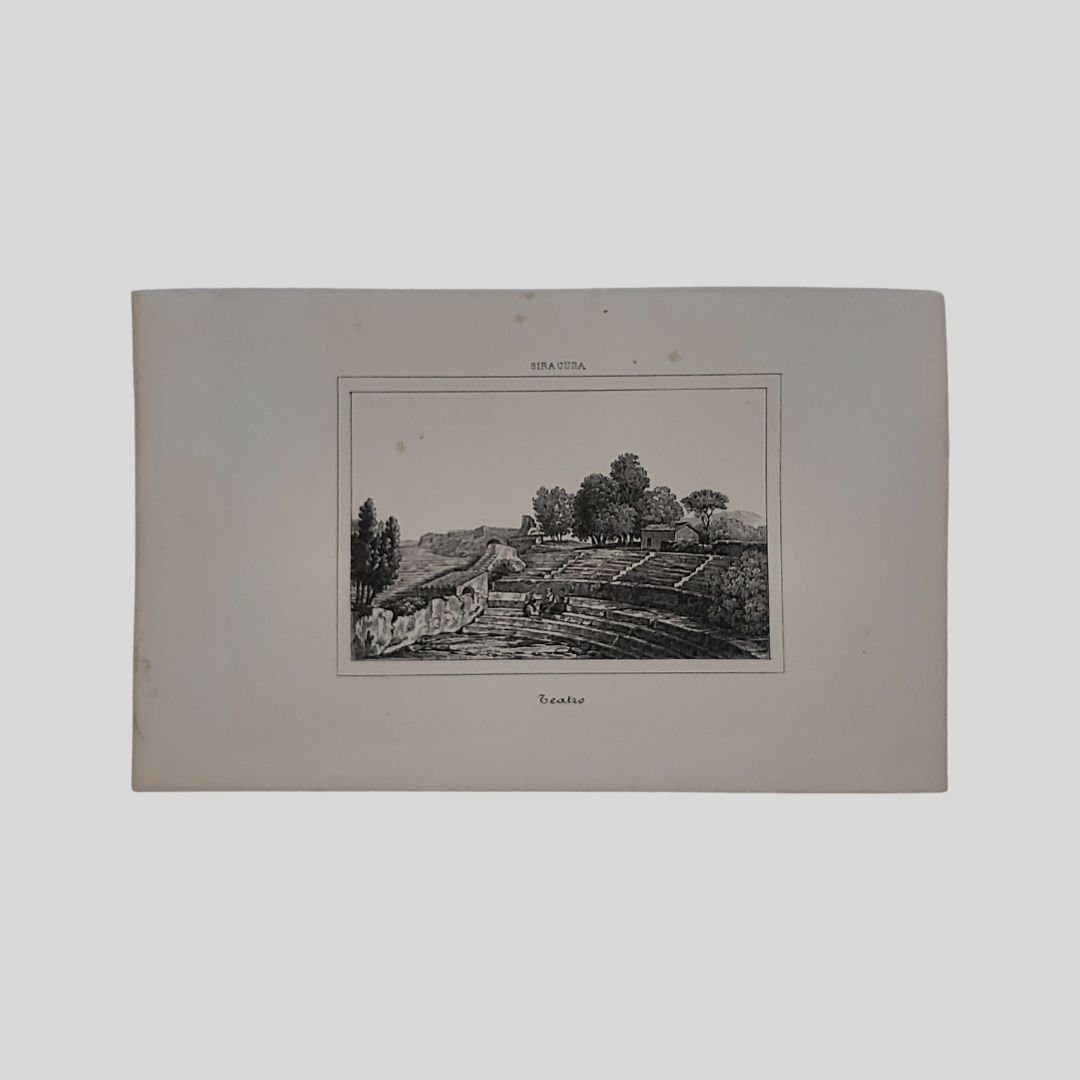 Litografia, 1852, cm 25,3×15,6 (tavola). Lievi fioriture. Tratta da: Cesare Malpica, Panorama dell’universo, Napoli, Stab. dell’Ateneo 1852. Cesare Malpica. Prima avvocato poi insegnante infine giornalista, deve la sua fortuna letteraria – sebbene non univocamente giudicata dalla critica – proprio al reportage. Per lo più concentrate tra gli anni Quaranta e Cinquanta dell’Ottocento, escono le sue impressioni di viaggiatore dedicate a Venti giorni a Roma, Un mese negli Abruzzi: impressioni, ma anche Dal Sebeto al Faro: impressioni di un viaggio nelle Calabrie, e ancora Toscana, Umbria e Magna Grecia per arrivare, nel 1847, a una monografia dedicata alla Basilicata.
