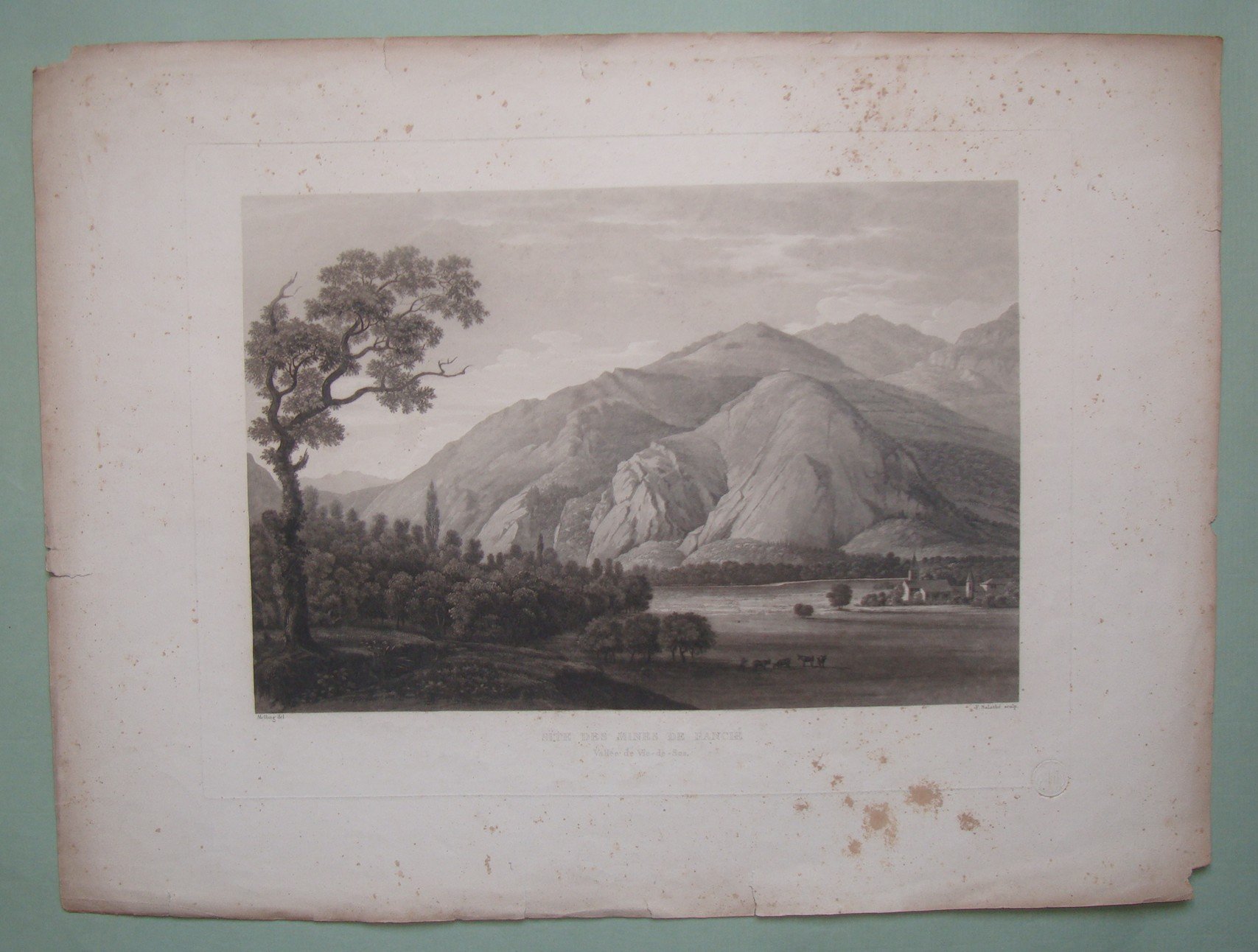 SALATHE’. Site des Mines de Ranche. 1835 ca. Cm.28x36. Incisione all’acquatinta di Melling.