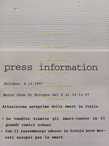 Smart 1a serie 1997 Motorshow cartella stampa lancio mercato italiano originale