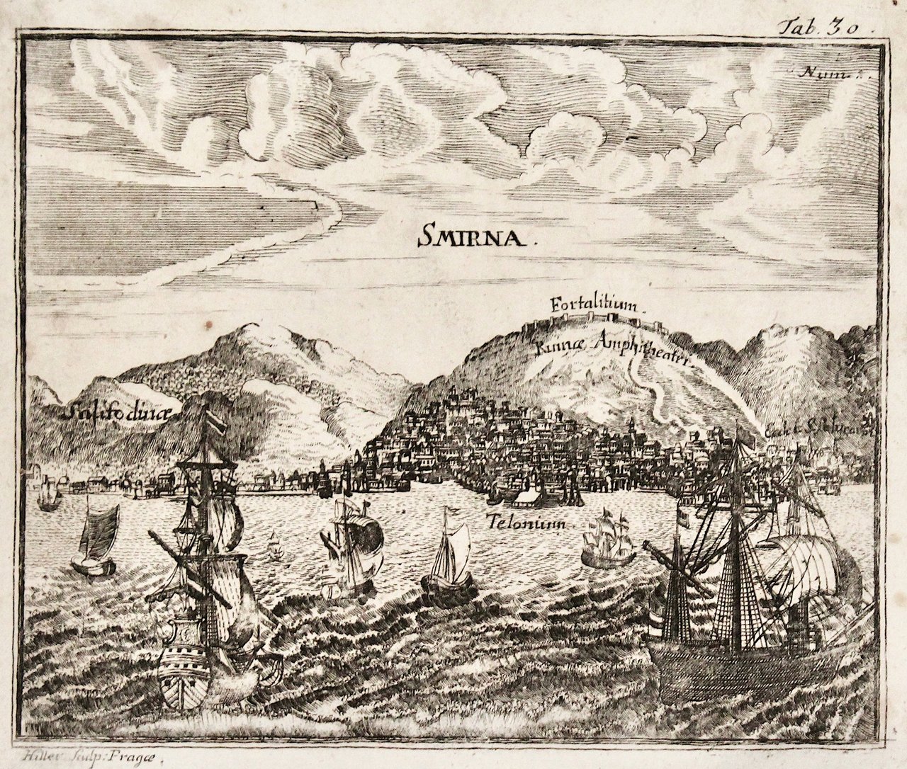 Incisione in rame, mm 150x170. Non comune veduta prospettica tratta da "Peregrinus in Jerusalem". Buone condizioni anche se presenta un alone e piccole macchie nel margine destro. <BR>
