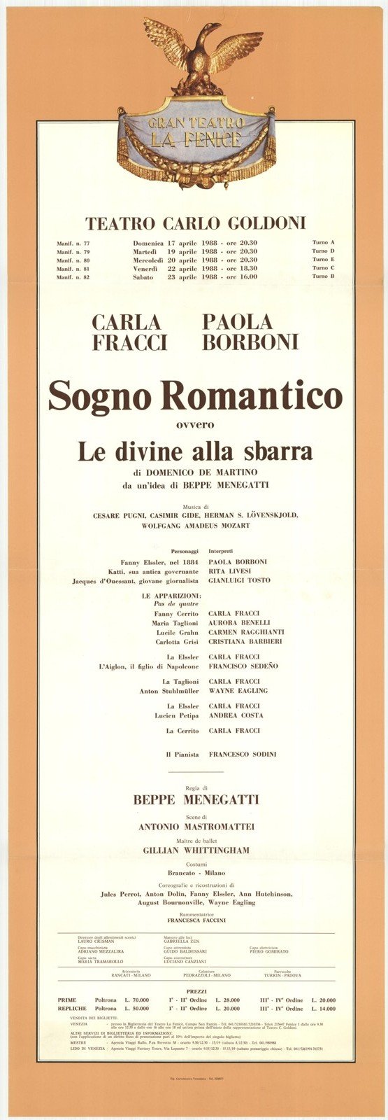 Locandina originale, Paola Borboni e Carla Fracci al Teatro Goldoni, Venezia 17-23 aprile 1988. Pieghe