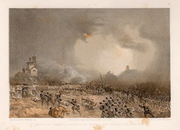 SOLFERINO-Guerra d'Italia - "Battle of Solferino - Attack of the Madonna della Scoperta by the Piedmontese". Bellissimo scorcio di battaglia, estremamente animato e decorativo.
