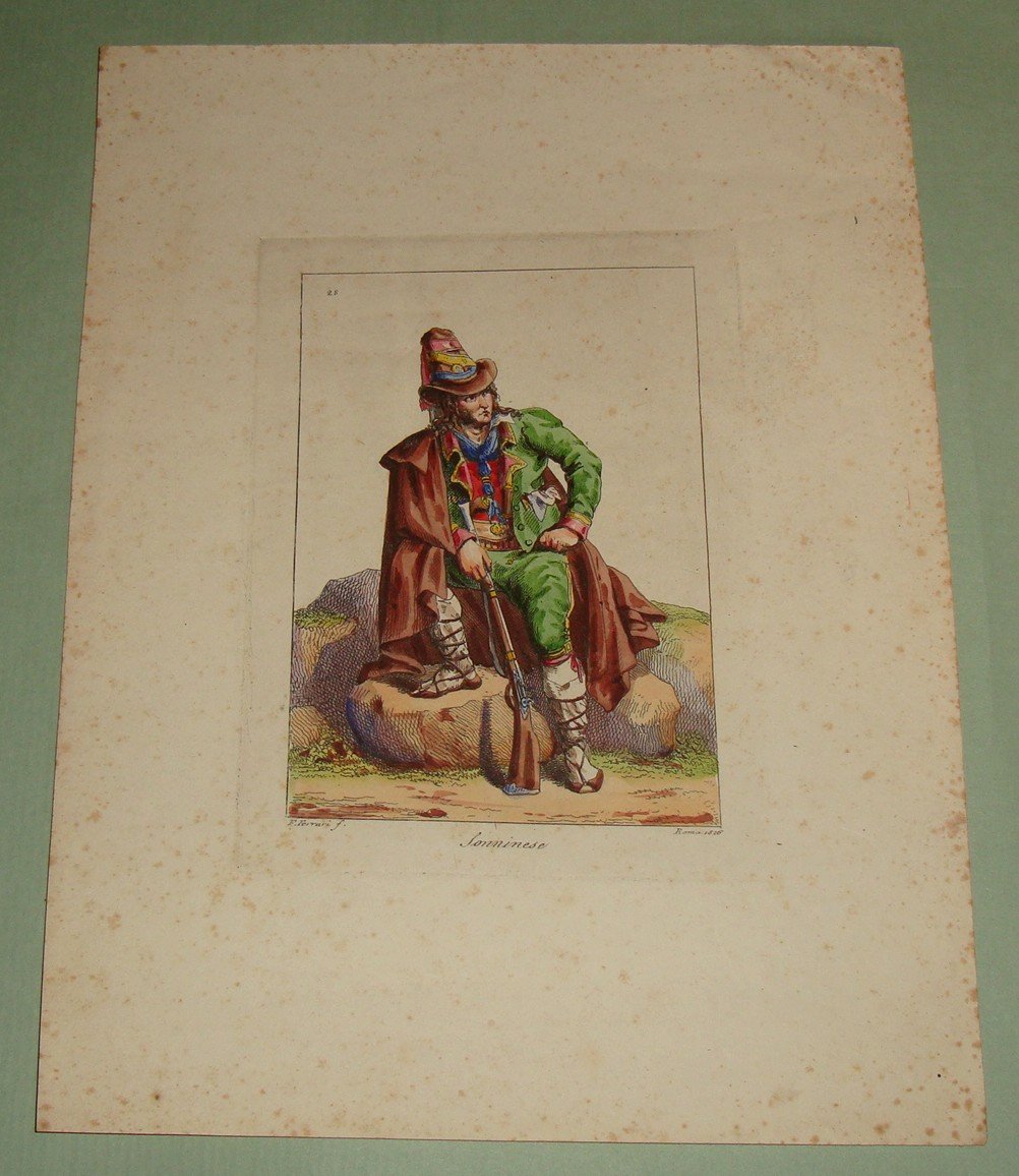Ferrari F. Sonninese. Visto di fronte. Roma, 1826. Incisione in rame rialzata all’acquarello. Cm. 17x13 oltre margini.
