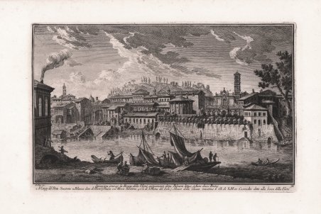 Veduta tratta dalla monumentale opera ' Delle magnificenze di Roma antica e moderna.Pubblicata in 10 volumi dal 1747 al 1761, l’opera presenta 238 incisioni in rame, ciascuna incisione con testo narrativo che fornisce informazioni storiche e documentarie. ' Conosciuto dai più semplicemente come il "maestro" di Giovanni Battista Piranesi, Giuseppe Vasi rivela in quest'opera monumentale la pienezza della sua creatività grafica. I 10 libri che la compongono hanno ognuno un frontespizio con titolo e data diversi: ' Libro primo che contiene le porte e mura; Libro secondo, che contiene le piazze principali di Roma con obelischi, colonne, ed altri ornamenti; Libro terzo, che contiene le basiliche e chiese antiche di Roma; Libro quarto che contiene i palazzi e le vie più celebri; Libro quinto che contiene i ponti e gli edifizj sul Libro sesto che contiene la chiese parrocchiali; Libro settimo che contiene i conventi e case dei chierici regolari; Libro ottavo che contiene i monasteri e conservatorj di donne; Libro nono che contiene i collegj, spedali, e luoghi pii; decimo che contiene le ville e giardini più rimarchevoli. Le ' Magnificenze ' forniscono un panorama completo e al tempo stesso anticonvenzionale dell'Urbe: così, insieme alle consuete, celeberrime inquadrature desunte dalla migliore tradizione vedutistica, si trova anche una Roma insolita, quella che, talvolta, non esiste più. A quest'opera, di centrale importanza nell'editoria romana di metà Settecento, l'Autore aveva lavorato per quasi un ventennio realizzando una monumentale guida dell'Urbe dove accanto alle consuete e celeberrime inquadrature tratte dalla migliore tradizione vedutistica, immortala anche scorci insoliti che sono poi scomparsi con il cambiare della città. Il testo che accompagna le vedute nel primo volume è opera di Giuseppe Bianchini, nel secondo di Orazio Orlandi e nei restanti del Vasi stesso. A partire dall'edizione del 1786, l'opera del Vasi, fu aggiornata dal figlio Mariano, che la pubblicò col titolo ' Raccolta delle più belle vedute antiche, e moderne di Roma, mostrando solo il nome del padre come autore. Questa nuova edizione presentava molte tavole della prima edizione, ed alcune nuove. Anche la pubblicazione di Mariano Vasi fu stampata più volte, sempre con l’aggiunta di nuove tavole. Esemplare tratto dall'edizione del 1786. Acquaforte, stampata su carta vergata coeva, completa dei margini, in ottimo stato di conservazione. ' View taken from the monumental work ' Delle magnificenze di Roma antica e moderna. Published in 10 volumes from 1747 to 1761, the work features 238 copper engravings, each engraving with a narrative text that provides historical and documentary information. Known by most simply as the "master" of Giovanni Battista Piranesi, Giuseppe Vasi reveals in this monumental work the fullness of his graphic creativity. The 10 books that compose it each have a title page with a different title and date: ' Libro primo che contiene le porte e mura; Libro secondo, che contiene le piazze principali di Roma con obelischi, colonne, ed altri ornamenti; Libro terzo, che contiene le basiliche e chiese antiche di Roma; Libro quarto che contiene i palazzi e le vie più celebri; Libro quinto che contiene i ponti e gli edifizj sul Libro sesto che contiene la chiese parrocchiali; Libro settimo che contiene i conventi e case dei chierici regolari; Libro ottavo che contiene i monasteri e conservatorj di donne; Libro nono che contiene i collegj, spedali, e luoghi pii; decimo che contiene le ville e giardini più rimarchevoli. The ' Magnificences ' provide a complete and at the same time unconventional panorama of the City: thus, together with the usual, celebrated shots taken from the best tradition of ' vedutistica, one also finds an unusual Rome, one that, at times, no longer exists. The author had worked on this work, of central importance in Roman publishing in the middle of the eighteenth century, for almost twenty years, producing a monumental guide to the “Urbe” where, alongside the usual and famous shots taken from the best tradition of ' vedutistica, he also immortalized unusual views that have since disappeared with the change of the city. The text that accompanies the views in the first volume is by Giuseppe Bianchini, in the second by Orazio Orlandi and in the remaining ones by Vasi himself. Starting from the edition of 1786, the work of Vasi, was updated by his son Mariano, who published it under the title ' Raccolta delle più belle vedute antiche, e moderne di Roma, showing only the name of his father as author. This new edition presented many plates of the first edition, and some new ones. The publication of Mariano Vasi was also printed several times, always with the addition of new plates. ' View taken from 1786 edition of the Vasi’s ' Delle Magnificenze di Roma Antica e Moderna. Etching, printed on contemporary laid paper, in very good condition. Cfr. Scalabroni, 182