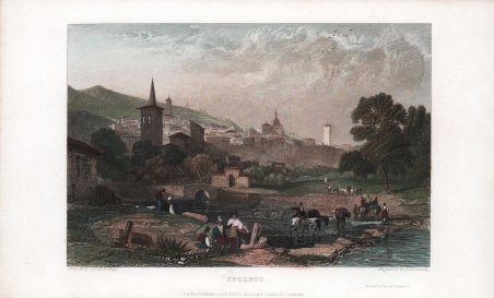 Veduta tratta da ' The Tourist in Switzerland and Italy. Illustrated from drawings by S. Prout, Esq… London: Robert Jennings, 1830 ' di Thomas Roscoe. Il ' Tourist in Switzerland and Italy ' è il primo di nove volumi conosciuti sotto il nome di The Landscape Annual”. I volumi successivi riguardano la sola Italia e poi Francia e Spagna. L'opera è illustrata da incisioni tratte da disegni del pittore inglese Samuel Prout di J. D. Harding ed altri; è stampata a Londra tra il 1830 ed il 1838. ' Incisione in rame, finemente colorata a mano, in ottimo stato di conservazione. View from ' The Tourist in Switzerland and Italy. Illustrated from drawings by S. Prout, Esq. London: Robert Jennings, 1830 ' by Thomas Roscoe. The Tourist in Switzerland ' and Italy ' is the first of nine volumes known as ' The Landscape Annual. Subsequent volumes cover Italy alone and then France and Spain. The work is illustrated with engravings from drawings by the English painter Samuel Prout, J. D. Harding and others; it was printed in London between 1830 and 1838. ' Copperplate, fine later hand colour, in excellent condition. Cfr.