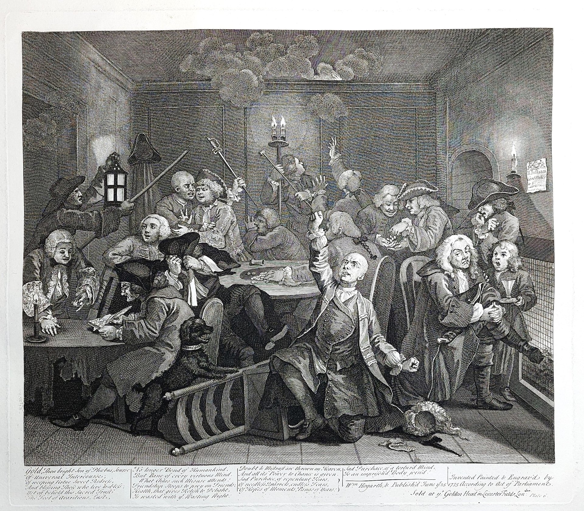 Stampa antica Antique print Original Autore William Hogarth A Rake's Progress, Tavola 6: Stampa originale di William Heath da matrici originali di William Hogart 1822