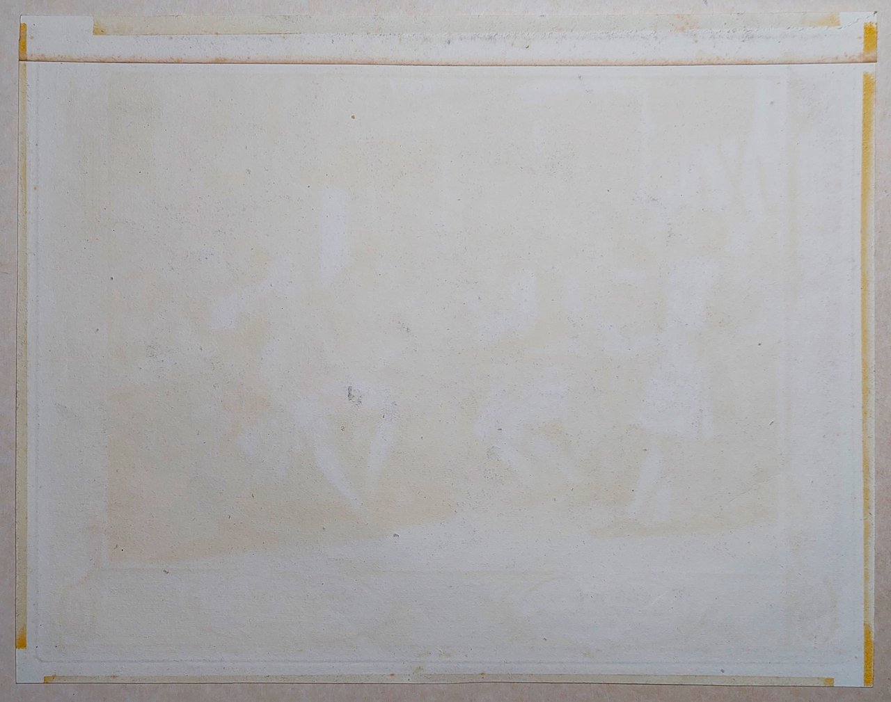 Fioriture diffuse lungo i margini, una fascetta applicata anticamente al margine superiore, alcune leggere fioriture soprattutto al recto, ossidazione lungo i margini visibili al verso dovute a vecchio nastro adesivo asportato.