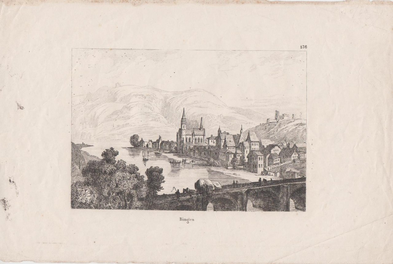 stampa antica old map litografia Veduta di Bingen and Klopp castle 1880 c.a.