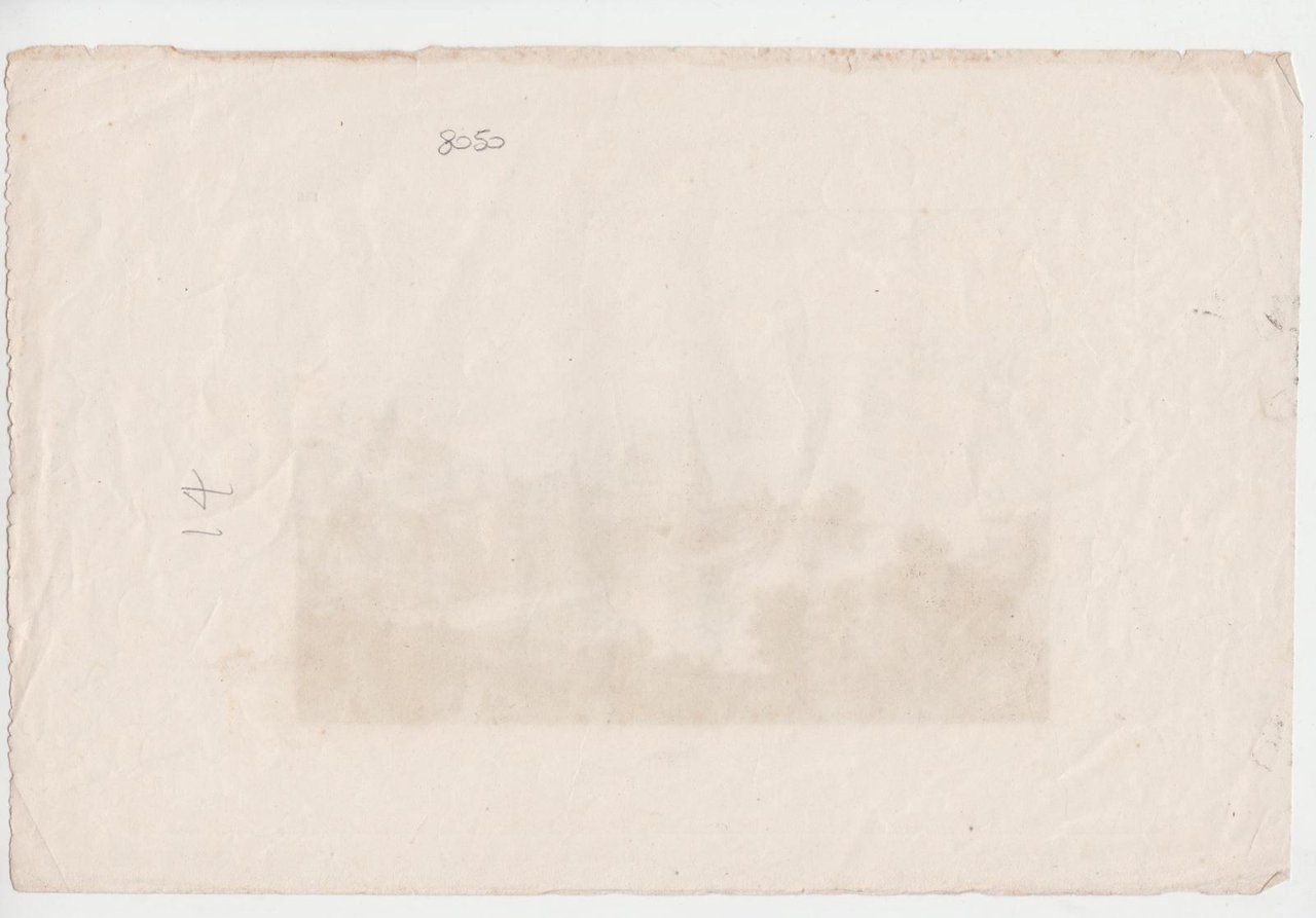 in discreto stato allcuni aloni al margine sinistro, una piega all'angolo inferiore e superiore destro e aloni di colla al margine superiore, dimensione foglio cm. 26,6x 17,5 incisione cm. 15,5 x 10,7
