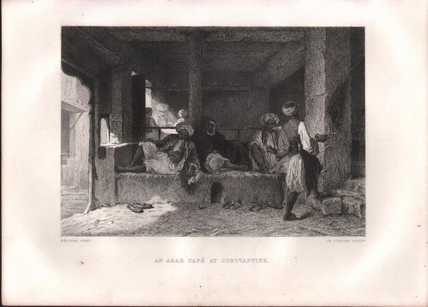 Stampa antica Old print An arab cafè at Constantine Hedouin Ch Courtry inc. 1875