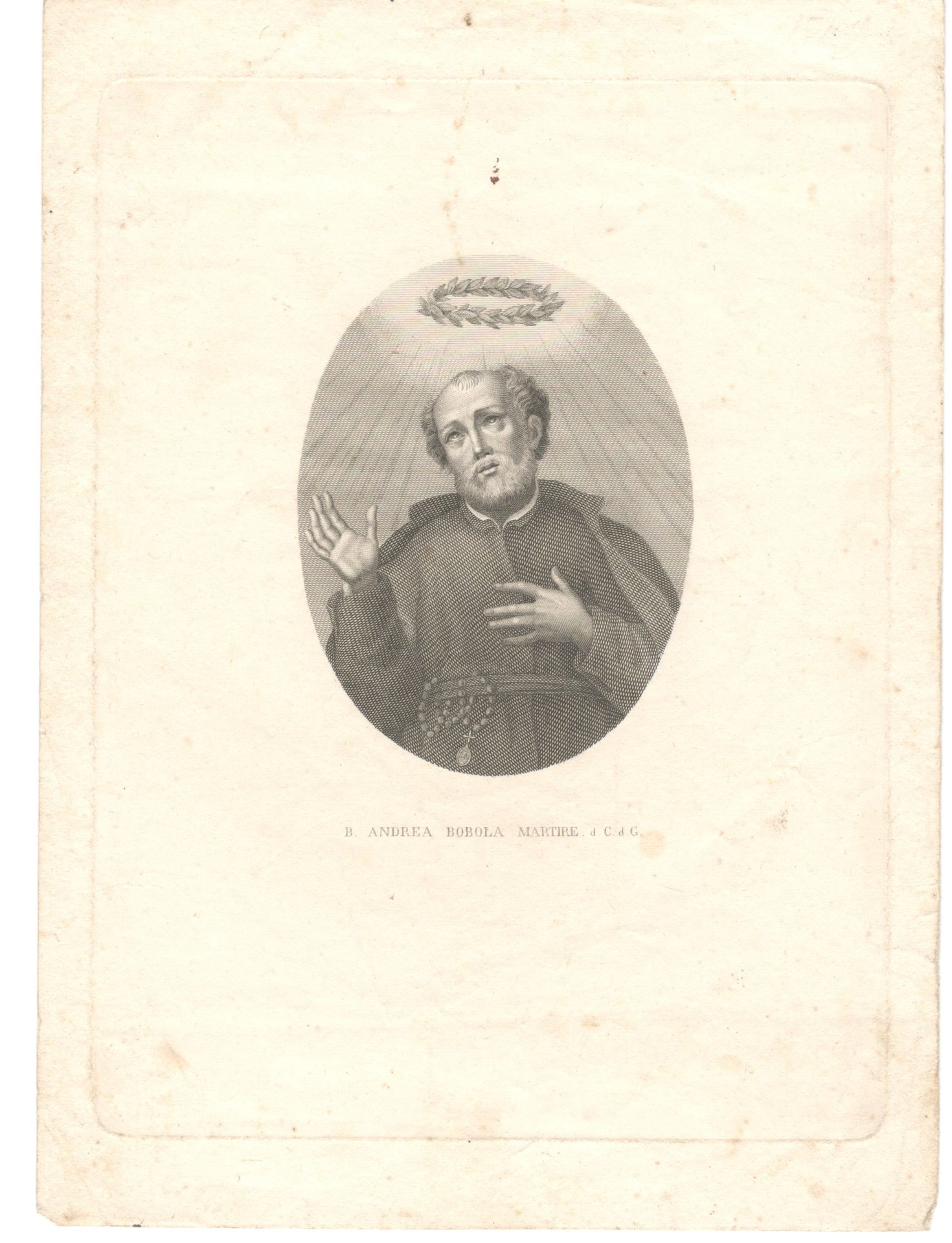 Stampa antica old print B. Andrea Bobola Martire Compagnia di Gesù XIX sec.