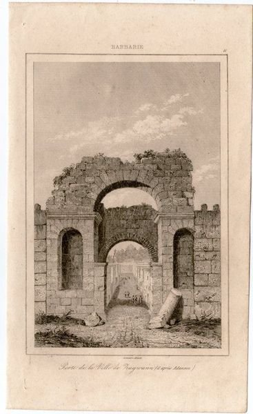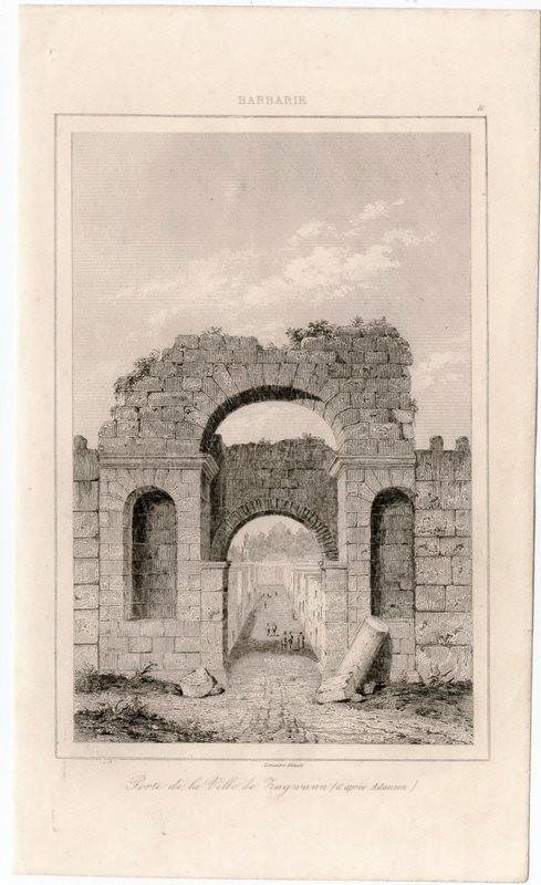 Stampa antica Old print Barbarie Porta della città di Zaguvann Lemaitre 1841