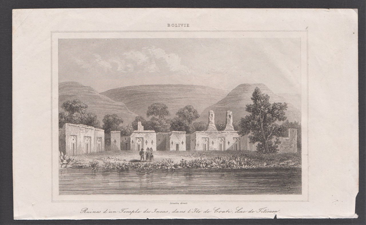 Stampa antica Old print bolivia rovine del tempio di Inca Lemaitre 1841