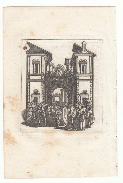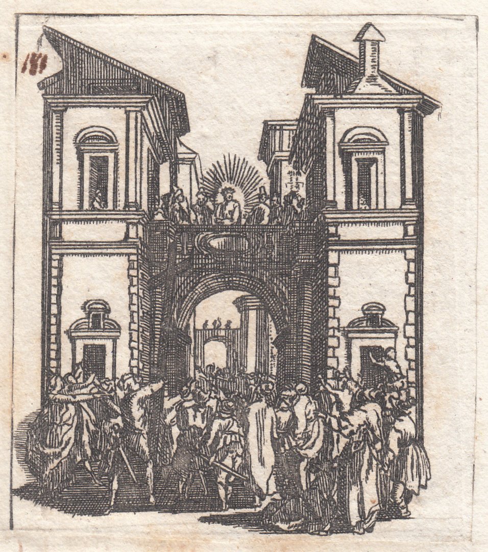 Stampa antica Old print Bulino Jacques Callot Chi volete? Gesù o Barabba? 1624-1625