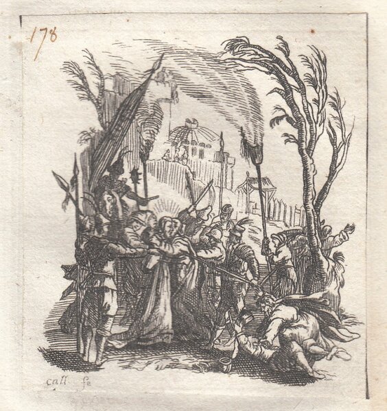 Stampa antica Old print Bulino Jacques Callot Il tradimento di Giuda 1624-1625