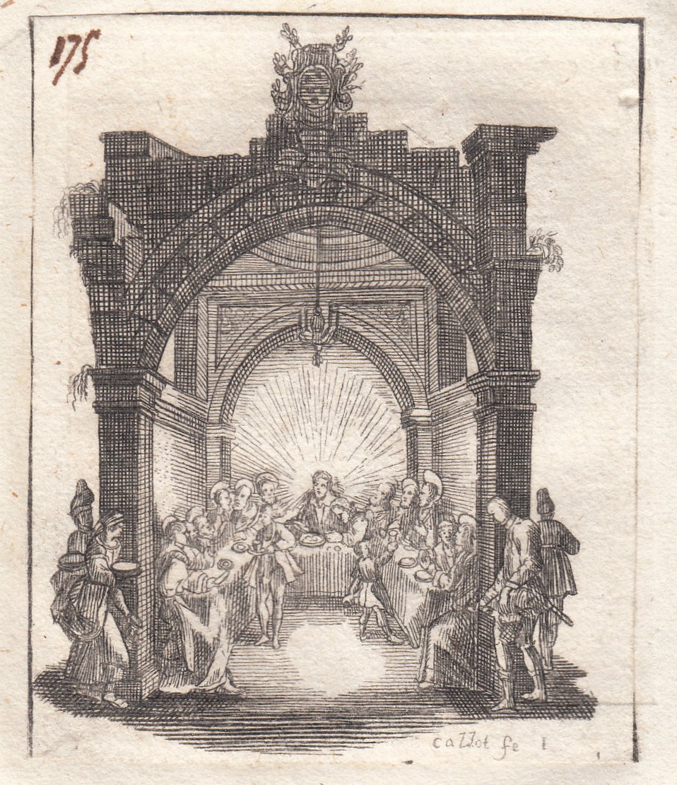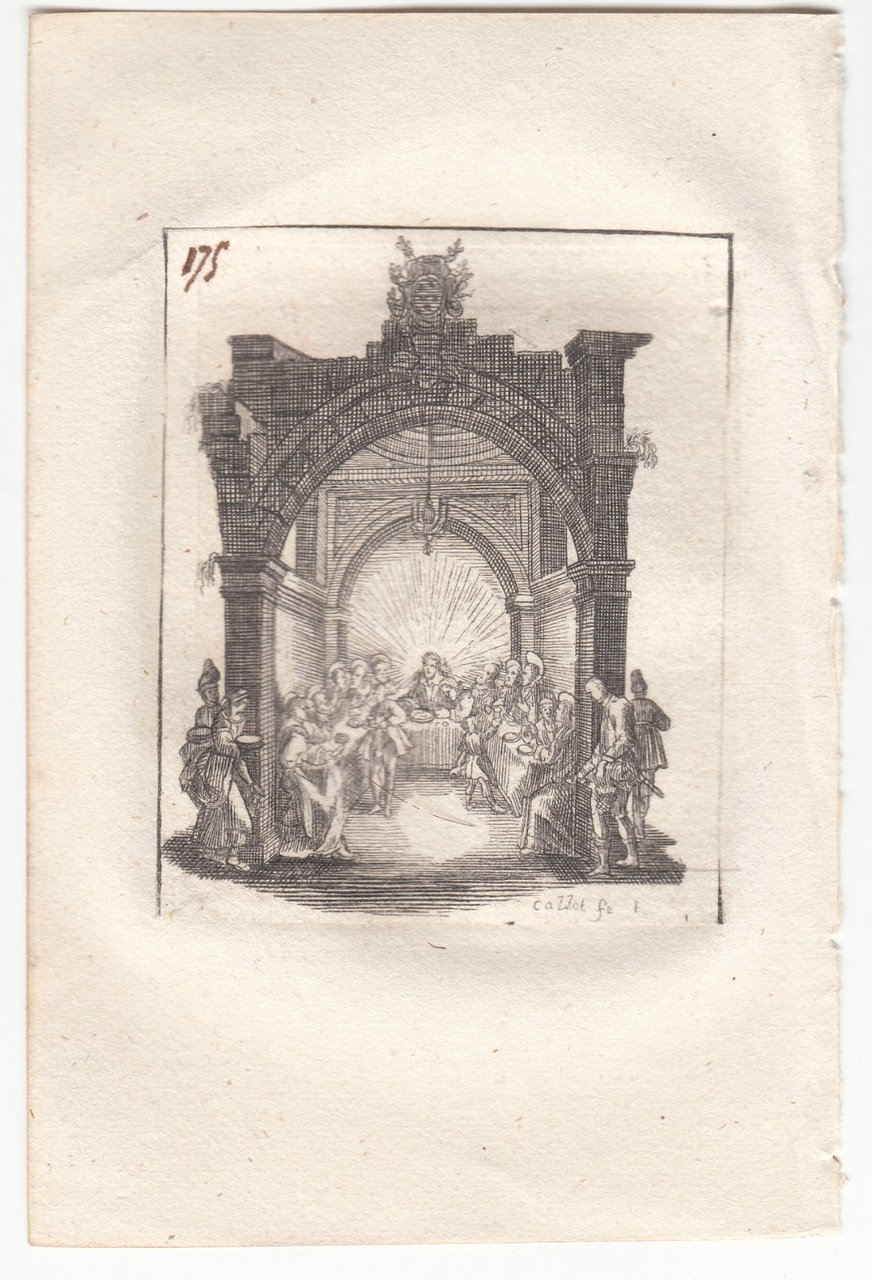 Stampa antica Old print Bulino Jacques Callot L'ultima cena 1624-1625