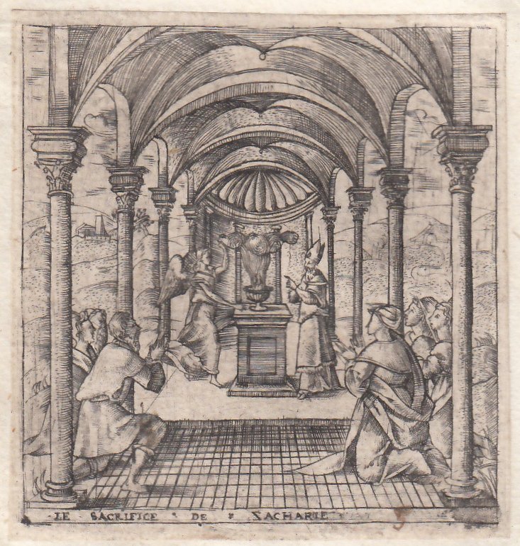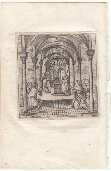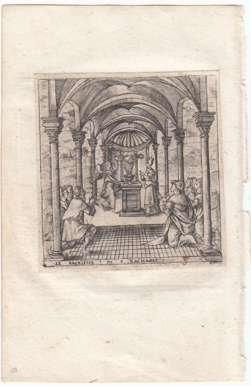 Stampa antica Old print Bulino L. Gaultier Il Sacrificio Di Zaccaria 1576-80