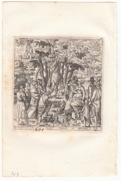 Stampa antica Old print Bulino L. Gaultier Le Predicazioni Di Giovanni Battista 1576-80