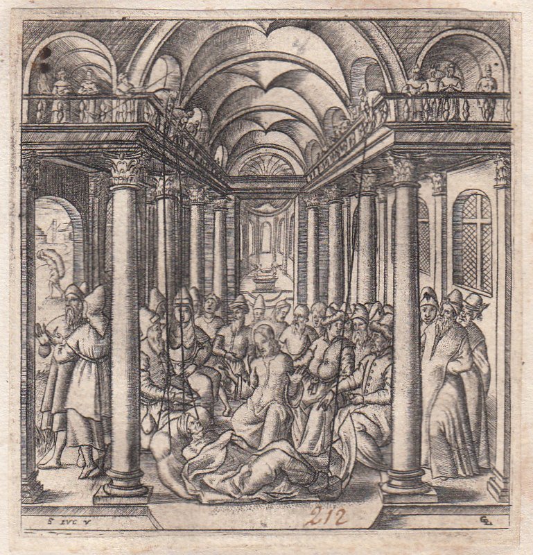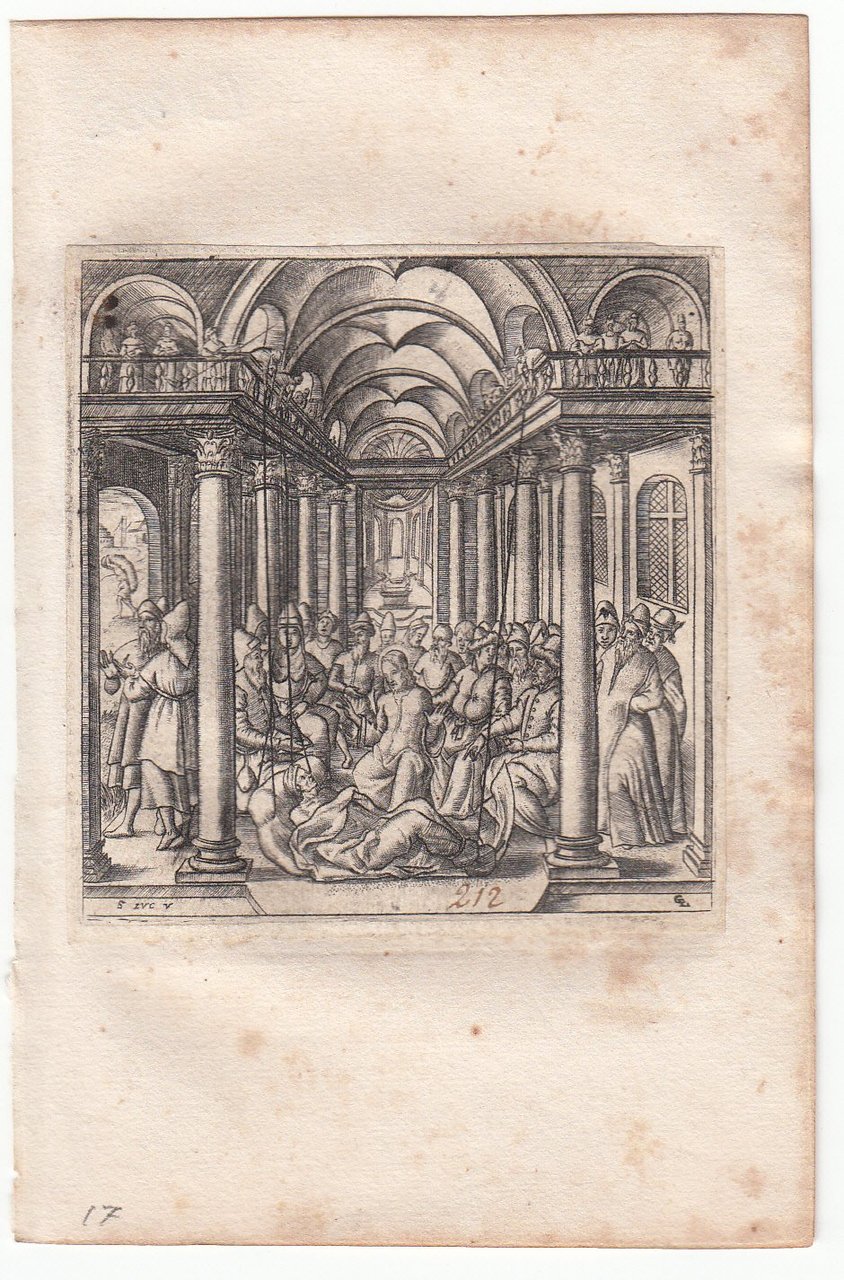 Stampa antica Old print Bulino L. Gaultier Luca V S. Luca V Gesù guarisce un paralitico 1576-80