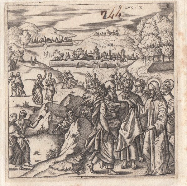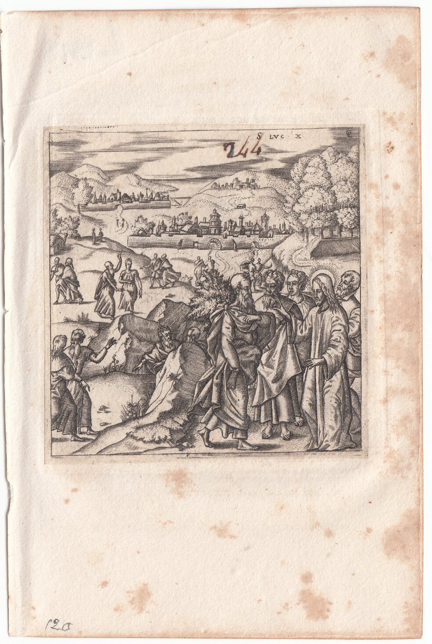 Stampa antica Old print Bulino L. Gaultier Luca X Gesù e la missione dei settantadue discepoli 1576-80