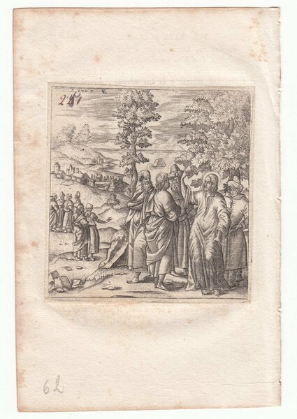 Stampa antica Old print Bulino L. Gaultier Luca X Missione dei settantadue discepoli 1576-80
