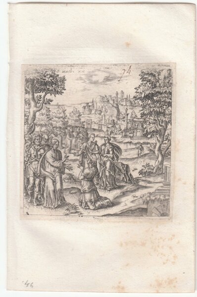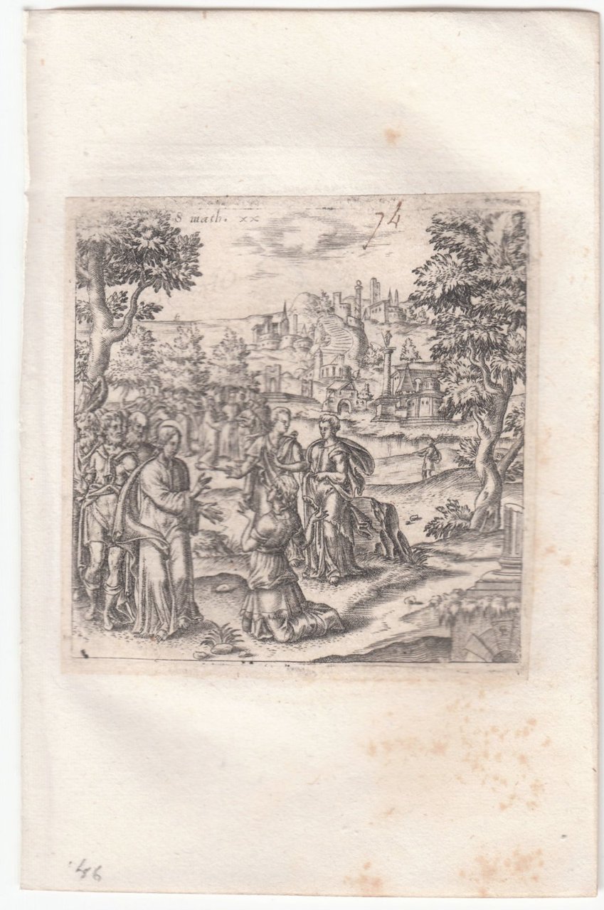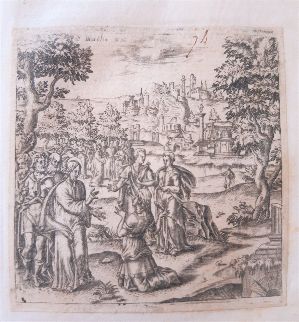 Stampa antica Old print Bulino L. Gaultier Matteo XX Il Figlio dell'uomo, venuto per servire 1576-80