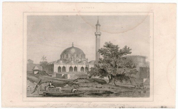 Stampa antica Old print Egitto La Grande Moschea di Boulag Lemaitre 1841