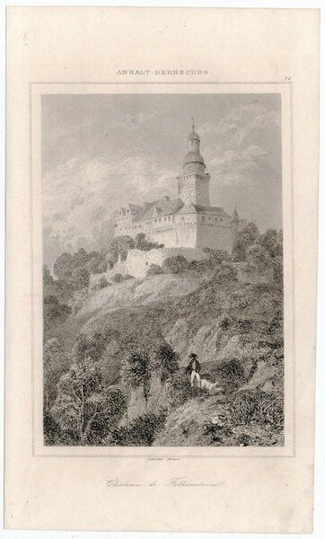 Stampa antica Old print Germania Anhalt-Bernbourg castello di Falkenstein Lemaitre 1841